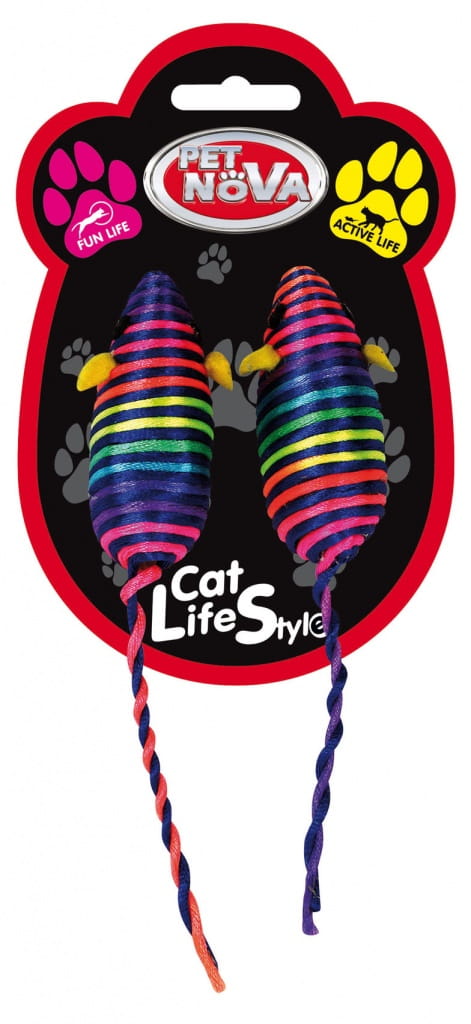 Zabawka dla kota zestaw 2 myszki tęczowe 7x3cm