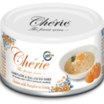 Delikatny tuńczyk z kawałkami marchewki w charakterystycznym sosie Chérie. Odpowiedni dla kotów z przewlekłymi problemami z układem moczowym, ponieważ wszystkie formuły zawierają mniej niż 250 mg/100 kcal fosforu. Pasza zapewnia funkcjonalną pielęgnację układu moczowego, poprawia stan skóry i sierści.
