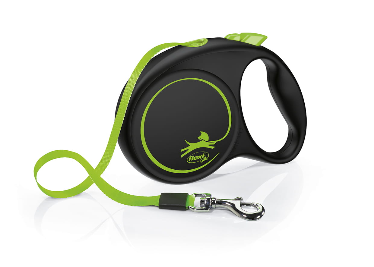 Limitowana wersja kolorystyczna: czarna obudowa z kolorową taśmą. Wysuwana smycz ma długość 5m, przeznaczona dla psów o wadze do 25kg. Jaskrawy kolor taśmy pozwala na lepszą jej widoczność przy jej rozwinięciu. Produkt wyposażony jest w niezawodny mechanizm zwijający oraz wysoce skoteczny hamulec z blokadą, obsługiwany intuicyjnie, za pomocą kciuka. Chromowany karabinek jest odporny na rdzę.