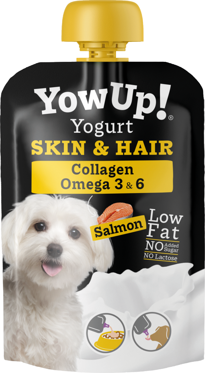 Wersja Skóra & Sierść to jogurt z olejem rybim, głównie z łososia, o wysokiej zawartości niezbędnych nienasyconych kwasów tłuszczowych Omega 3: EPA (kwas eikozapentaenowy) i DHA (kwas dokozaheksaenowy), który ma następujące właściwości: