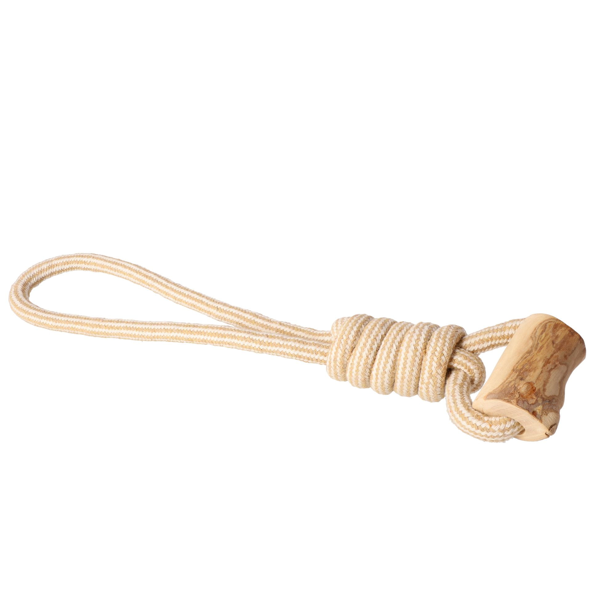 Psia-Kawka – Gryzak z drewna kawowego na sznurze w formie lassa | 39 cm