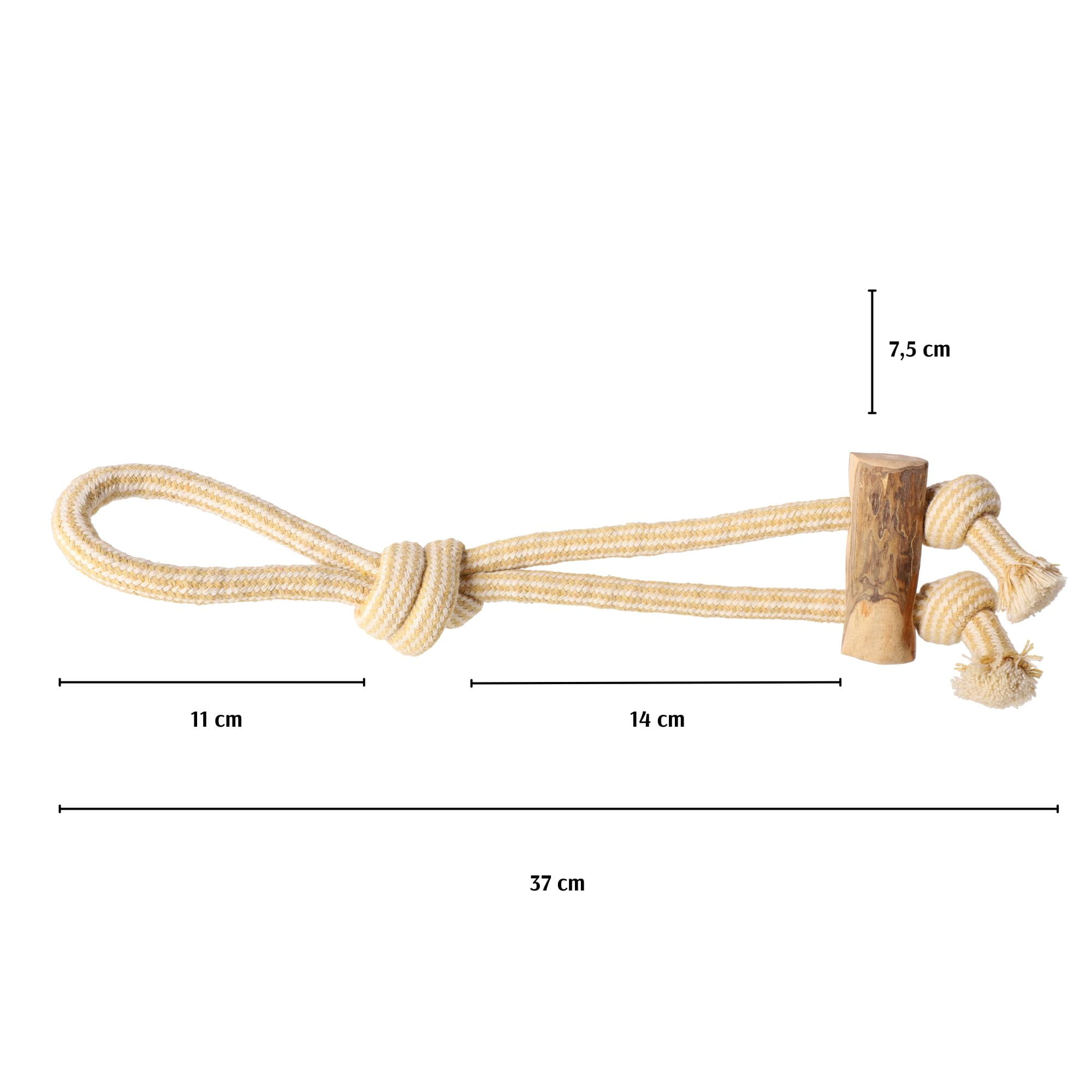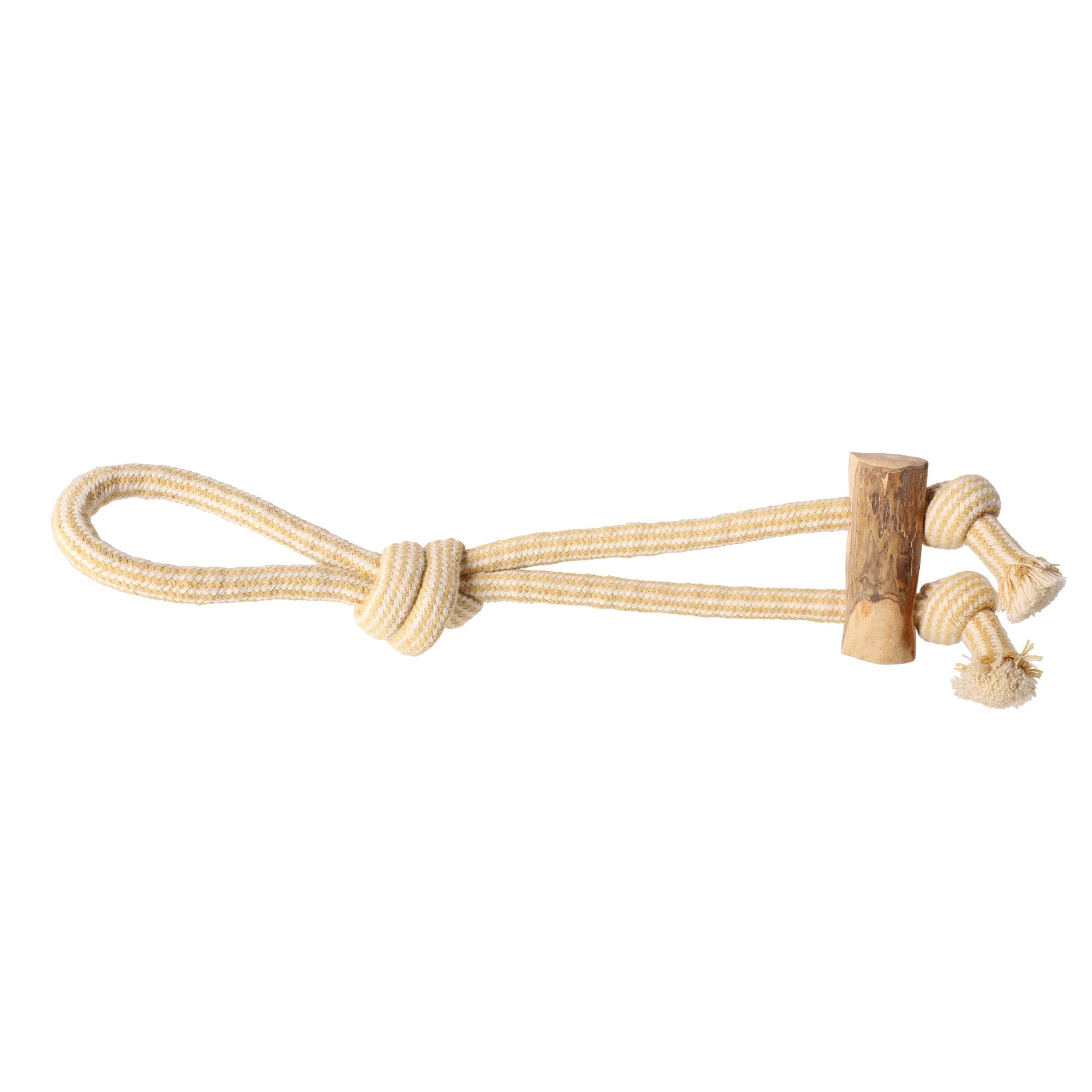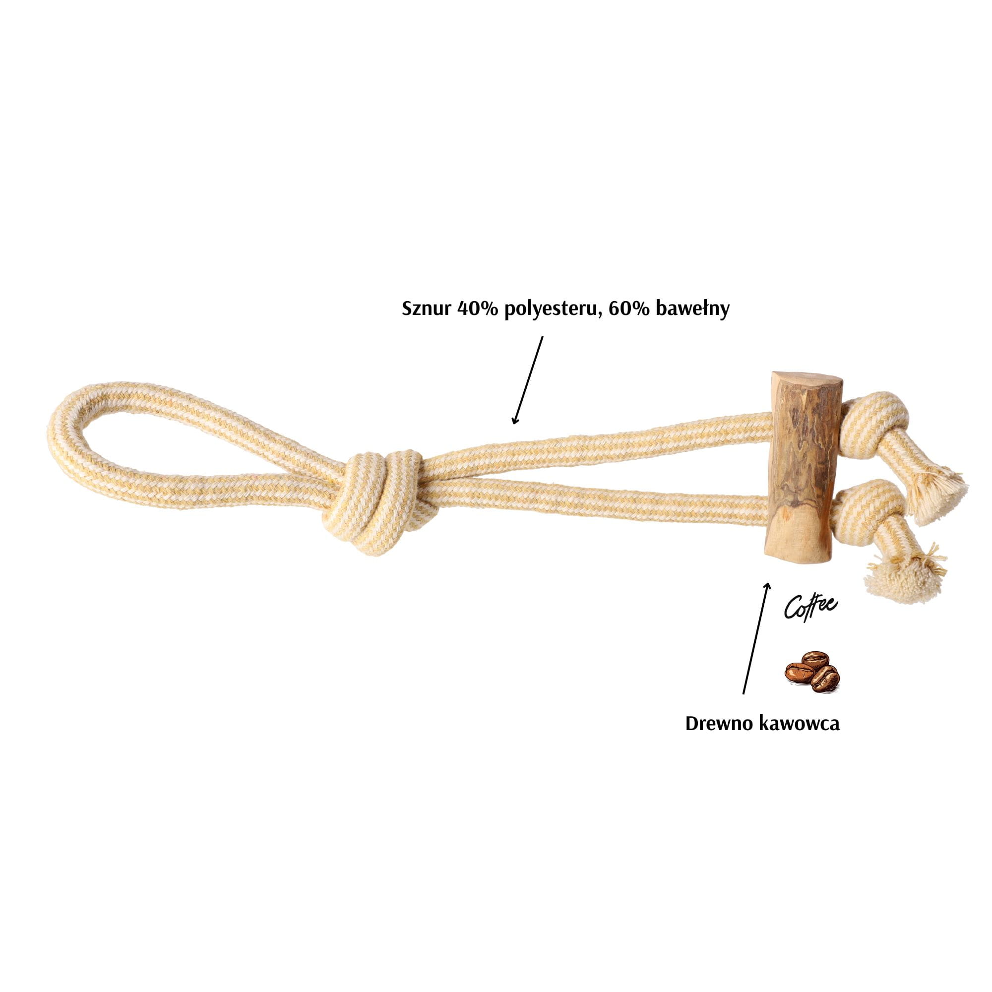 Połączenie twardego drewna kawowego i solidnego sznura (60% bawełna, 40% poliester) w ergonomicznej formie przeciągacza zapewnia doskonałą zabawę, ćwiczy siłę psa i rozwija jego umiejętności ruchowe.