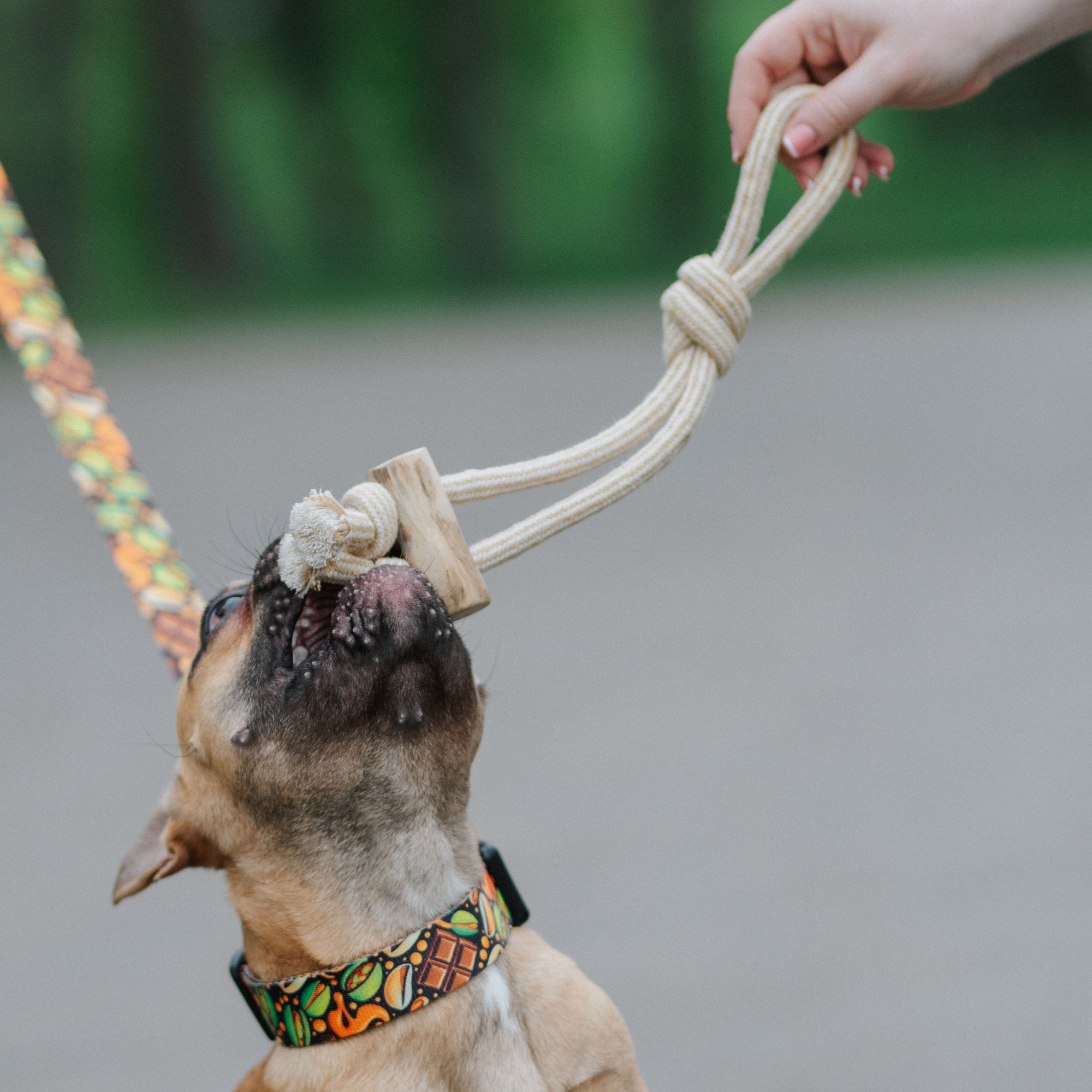 Psia-Kawka – Gryzak z drewna kawowego na sznurze w formie przeciągacza | 37 cm