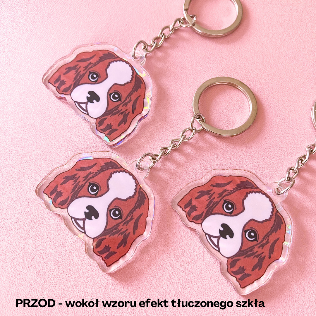Akrylowy brelok z autorskim wzorem Cavaliera Blenheim – jedyny taki wzór w Polsce i na świecie!