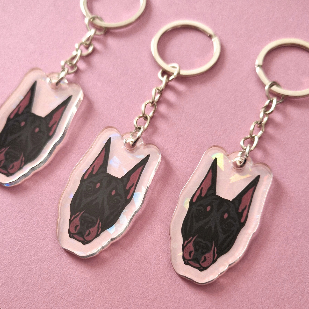 Akrylowy brelok z autorskim wzorem Dobermana – jedyny taki wzór w Polsce i na świecie!